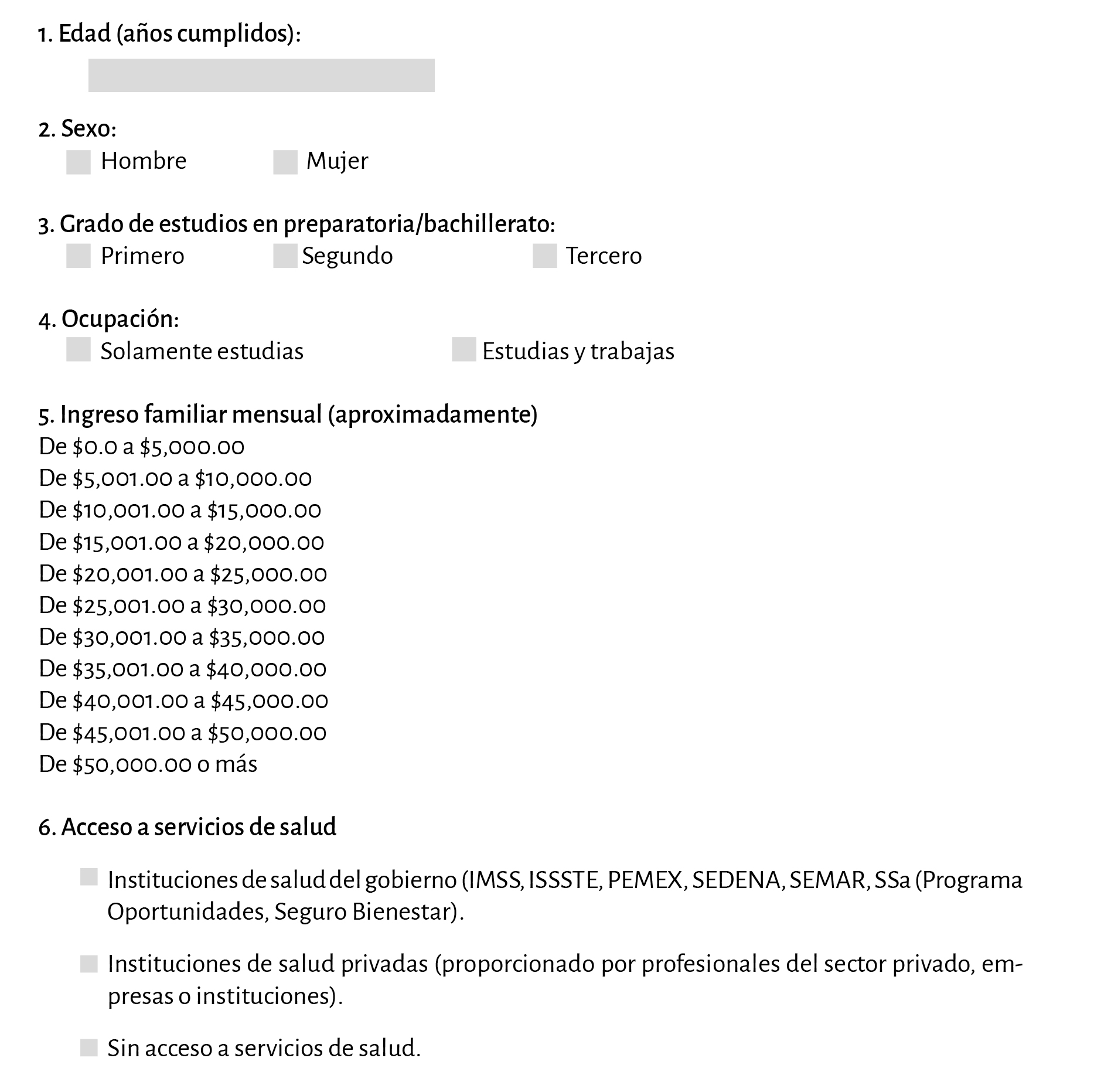 Antes de iniciar la encuesta, la persona que fungió como facilitadora solicitó a los estudiantes que contestaran todas las preguntas, y que, en caso de tener alguna duda sobre el contenido, se dirigieran con ella para atenderles.