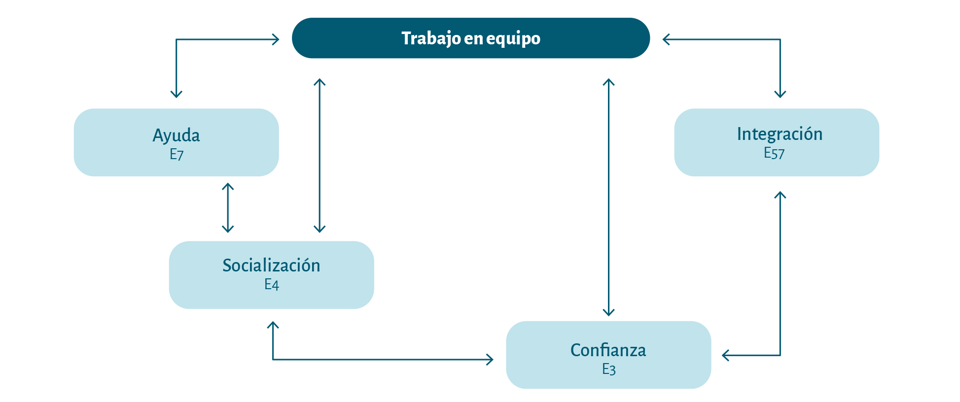 Específicamente, el trabajo en equipo se refiere a la serie de estrategias, procedimientos y metodologías que utiliza un grupo humano para lograr las metas propuestas en una organización, lo que las convierte en una habilidad que se relaciona con la comunicación, la empatía y la capacidad para construir una red de contactos sociales. Estos aspectos se advierten en los reportes de los soldados, quienes también resaltan que la ayuda, la socialización y la integración entre los miembros favorecen el logro de los objetivos durante el servicio militar (Carrasquero et al., 2018; Jiang et al., 2022; Morris et al., 2022).
