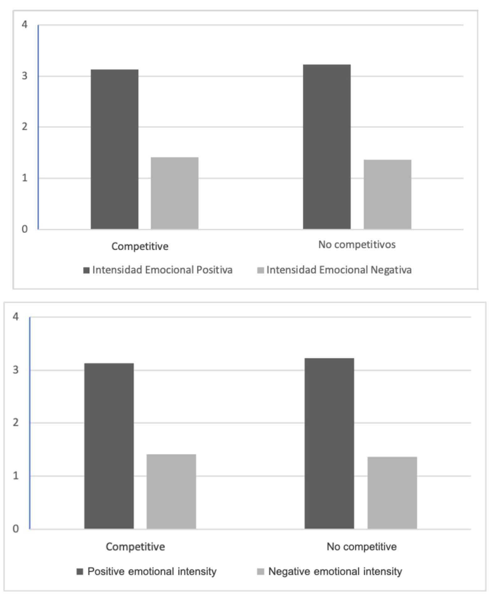 Competition was not a determining factor in the emotional experience. However, in games where it was present, winners tended to value positive emotions more than negative ones, whereas losers rated negative emotions higher and positive emotions lower.