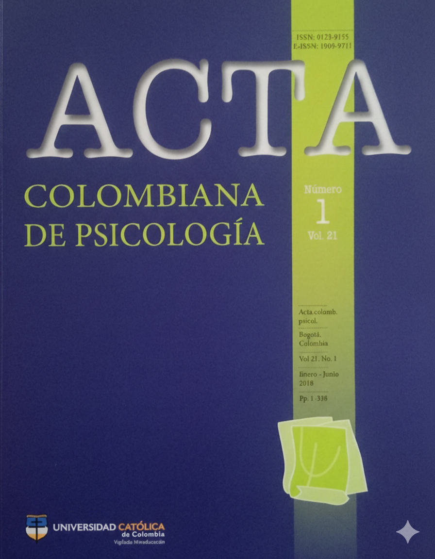 Acta Colombiana de Psicología se guía por las normas internacionales sobre propiedad intelectual y derechos de autor, y de manera particular el artículo 58 de la Constitución Política de Colombia, la Ley 23 de 1982 y el Acuerdo 172 del 30 de Septiembre de 2010 (Reglamento de propiedad intelectual de la Universidad Católica de Colombia)